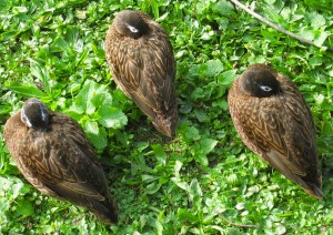 Animals are always performing behaviors! Even these sleeping ducks are behaving. Notice the position of their heads: why are they tucked in like that? Observe the alignment of their bodies: to what might they be orienting? See how the duck on the left has one eye open and one shut – that’s weird?!? It turns out that, amazingly, in ducks the two brain hemispheres take turns sleeping. So the eye controlled by the sleeping side of the brain droops shut, while the other eye stays open scanning for predators (Rattenborg et al. 1997, Nature 397). This unihemispheric slow wave sleep can even occur when birds are migrating, and has been discovered in many other avian species, and in marine mammals. This amazing phenomenon would never have been discovered if people dismissed sleeping ducks as “not behaving”!